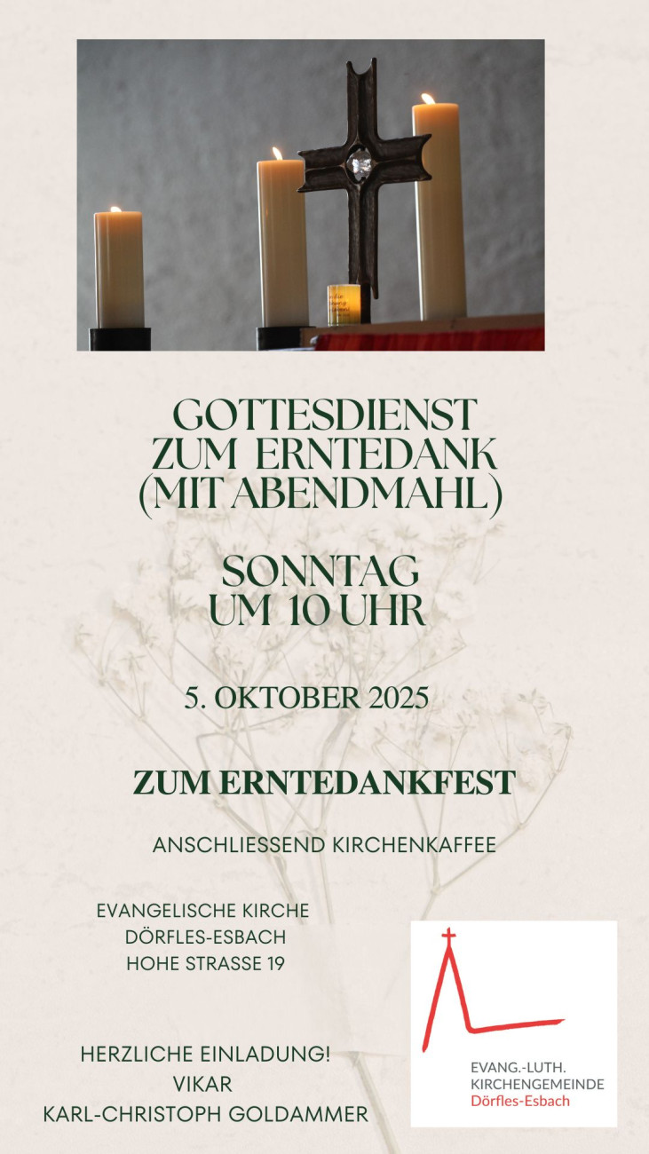 Herzliche Einladung zum Erntedank-Familiengottesdienst am Sonntag, 5. Oktober, um 10 Uhr in die Morizkirche. Lasst uns zusammen die Ernte bewundern und mit den Posaunen Gott loben und danken.